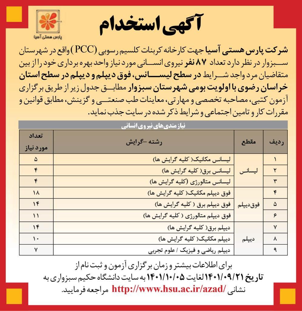 استخدام نیرو پروژه آهک سبزوار